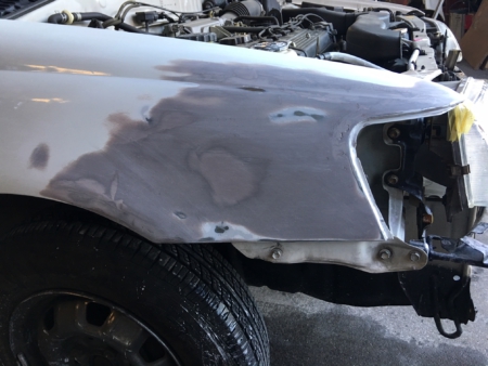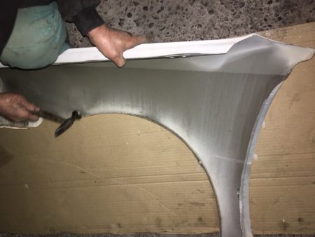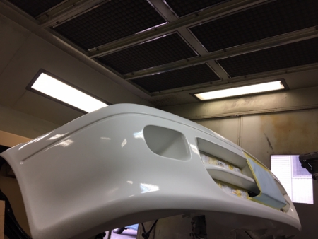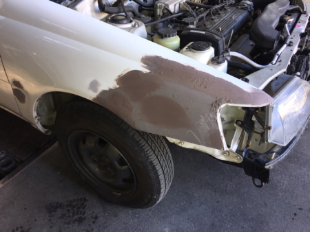 乾いては砥いでまた盛ってと車体肌が滑らかになるまでおんなじ工程を繰り返します